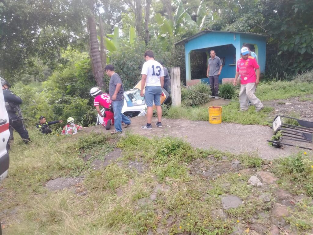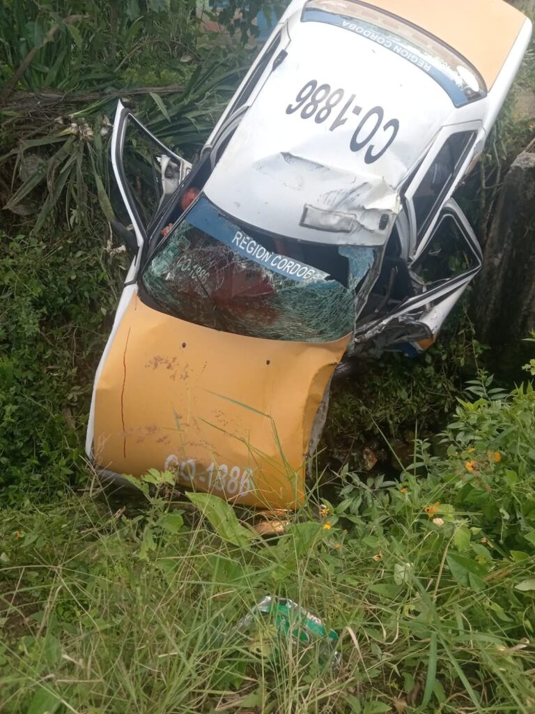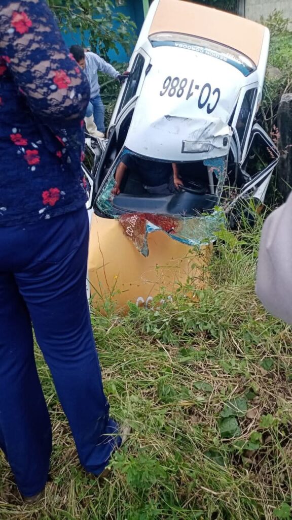 Córdoba, Ver.- Un taxi con número económico CO-1886 cayó en una zanja profunda mientras circulaba por la carretera que conecta con la comunidad de Acayotla, luego de que el conductor perdiera el control de la unidad.