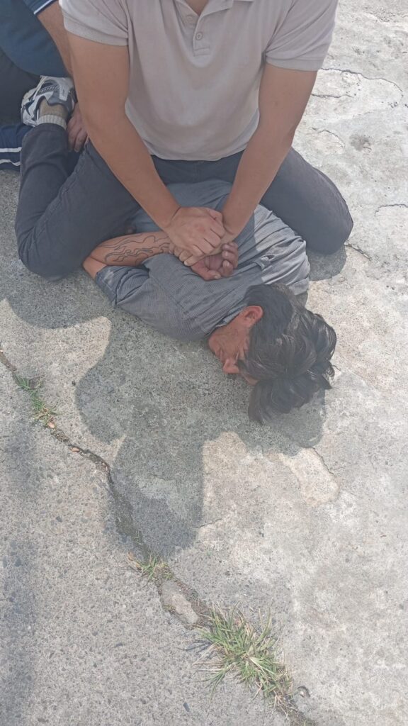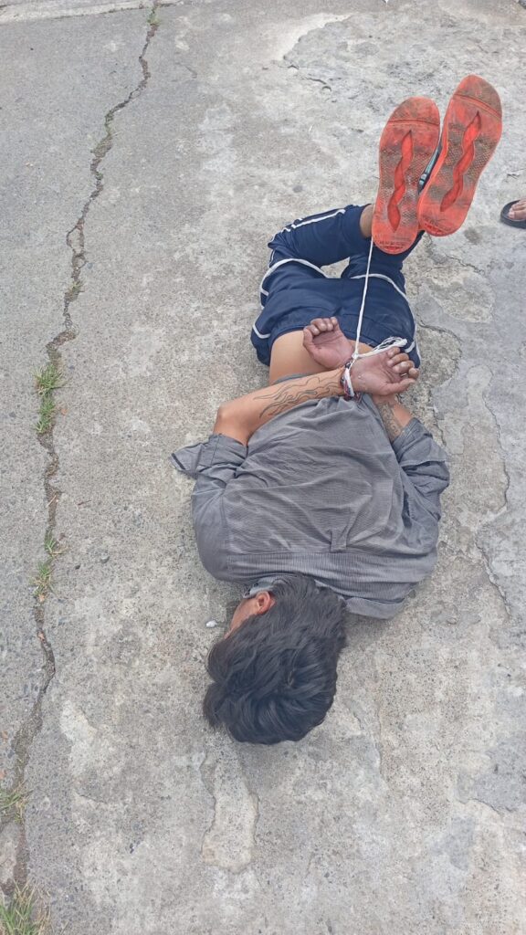 Tras ser alcanzado, fue sometido y atado de manos y pies, en espera de la llegada de las autoridades.