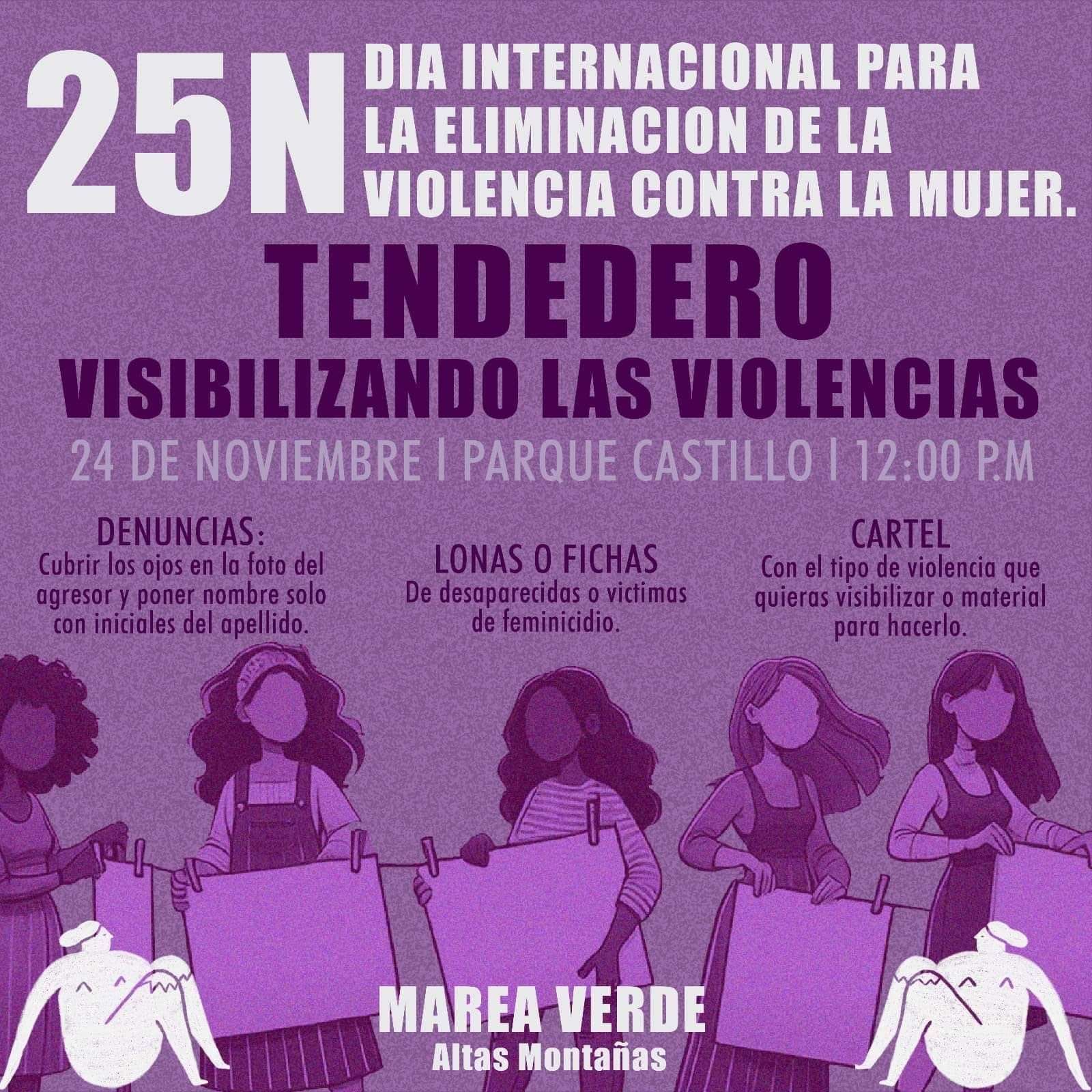 Orizaba, Ver.- Con motivo del Día Internacional de la Eliminación de la Violencia contra la Mujer, el colectivo Marea Verde de las Altas Montañas realizará un tendedero de denuncias el próximo domingo 24 de noviembre en el parque Apolinar Castillo.