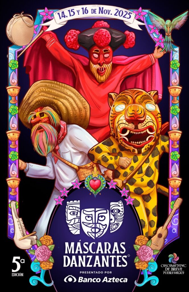 El Festival Nacional de Máscaras Danzantes se llevará a cabo los días 14, 15 y 16 de noviembre en Coscomatepec de Bravo, Veracruz, en donde en estos tres días de celebración se espera la participación de más de1 mil 500 danzantes, 300 músicos tradicionales y 80 maestros mascareros, en una gran fiesta donde cada paso cuenta una historia y cada máscara honra la memoria de un pueblo.