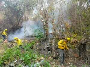 Autoridades estatales informaron que las corporaciones y brigadas mantienen el trabajo aéreo y terrestre mediante monitoreo de drones, por lo que se espera que con la presencia de lluvias se controlen al cien por ciento.