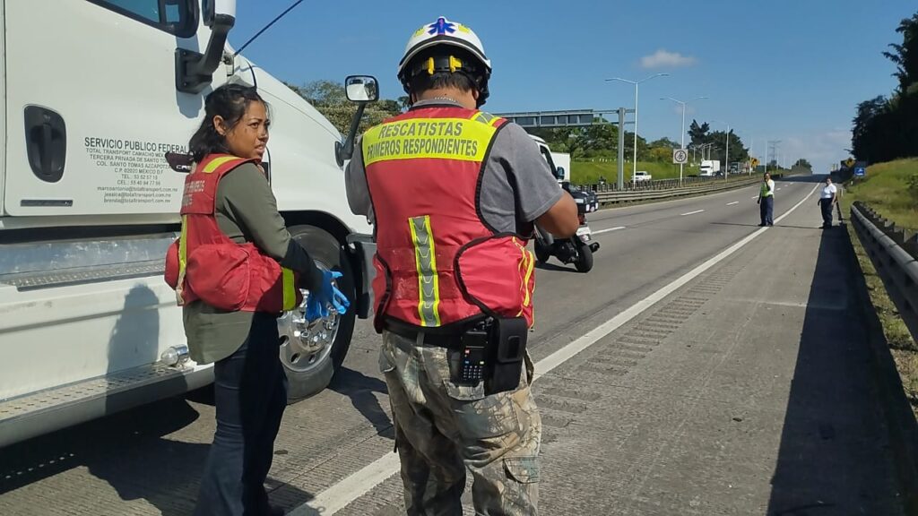 Elementos de los cuerpos de emergencia de Fortín, junto con personal de Caminos y Puentes Federales (CAPUFE), trabajaron por varios minutos utilizando equipo hidráulico para liberar a la persona atrapada. Posteriormente, fue trasladada a un hospital de la zona para recibir atención médica.