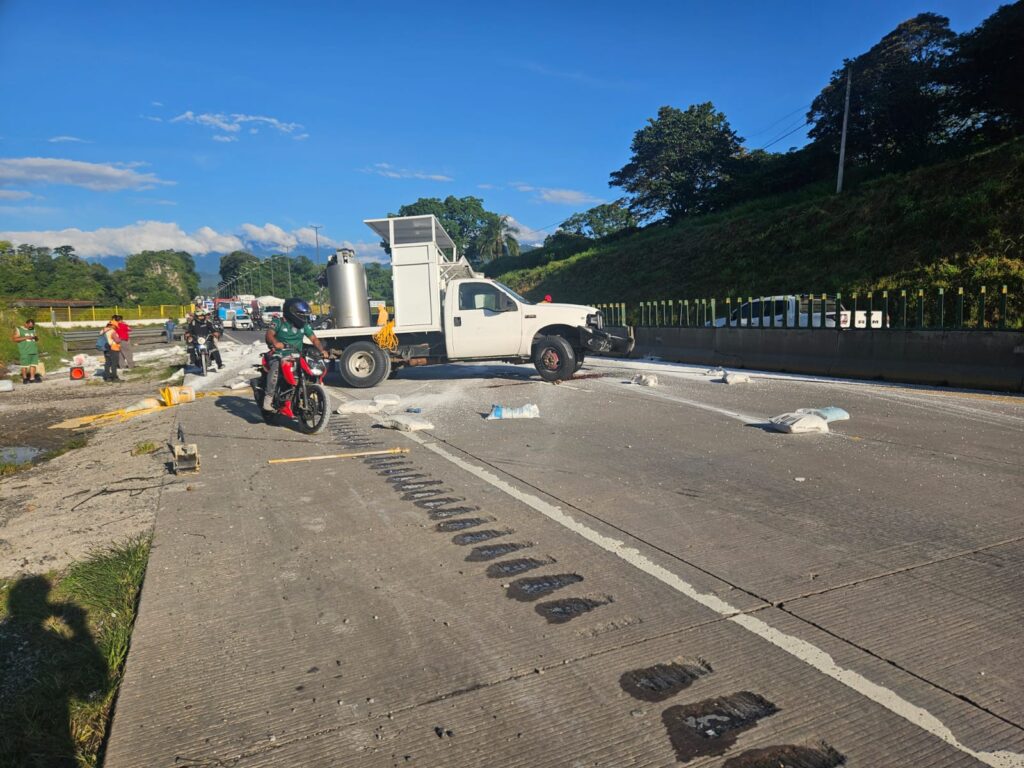 Una camioneta quedó atravesada obstruyendo varios carriles, lo que está generando afectaciones al tránsito en la zona. Equipos de emergencia y auxilio vial ya se dirigen al lugar para atender la situación y restablecer la circulación.