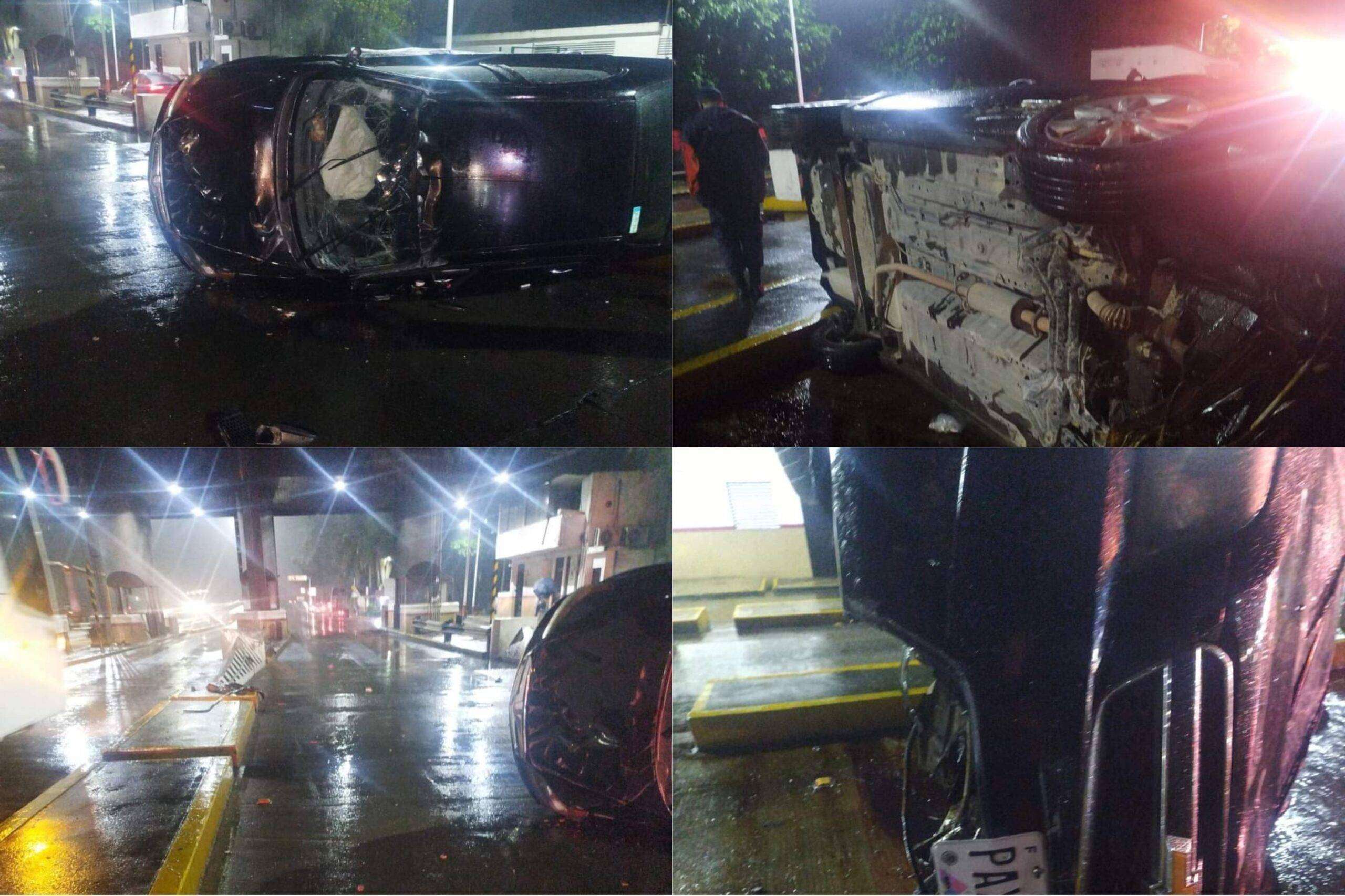 Fortín, Ver.- Un vehículo Chevrolet, terminó volcado y desbaratado con sus ocupantes lesionados en el interior, luego de chocar contra las barras de concreto que se encuentran en la ex caseta de cobro número 45 de Fortín, aparentemente al circular a exceso de velocidad sobre la autopista Veracruz-México a la altura del kilómetro 280.
