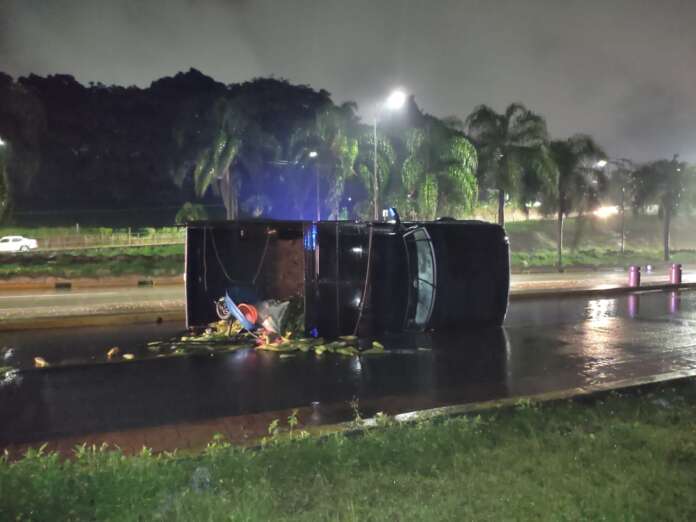 Córdoba, Ver –Una camioneta Ford se volcó durante la noche de este jueves en el bulevar Tratados de Córdoba, antes de llegar al puente del ferrocarril.